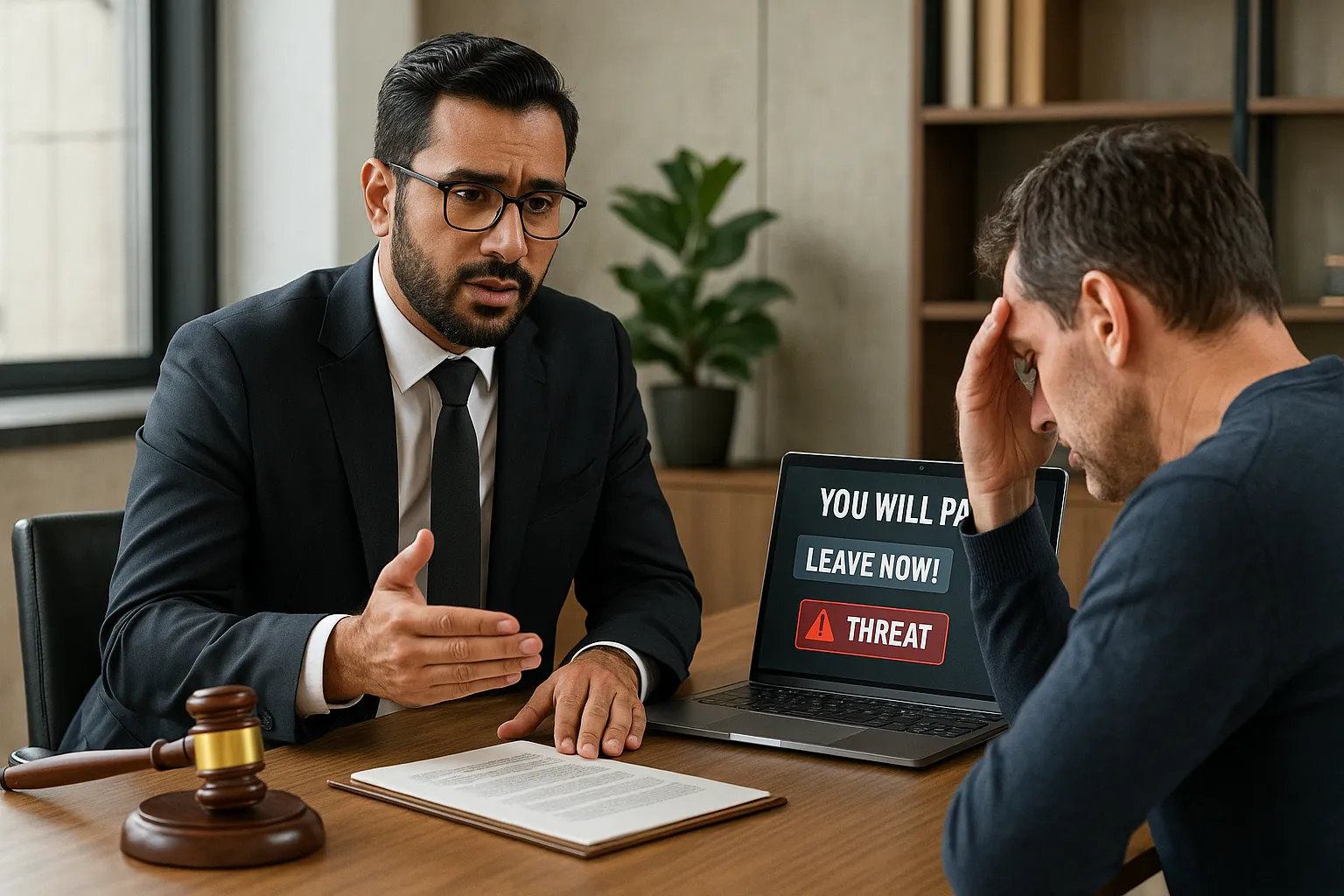 في إحدى قضايا التهديد عبر الإنترنت في ابوظبي، تلقّى شاب رسالة تطالبه بالمال مقابل عدم نشر صوره الخاصة. ورغم أن التهديد لم يكن صريحًا، إلا أن الشرطة تعاملت معه بجدية، وتم تصعيده إلى قضية جنائية. هذه الواقعة تؤكد أن القانون الإماراتي لا يتهاون مع أي تهديد إلكتروني يُحدث خوفًا مبررًا.